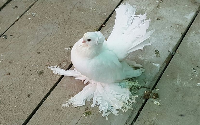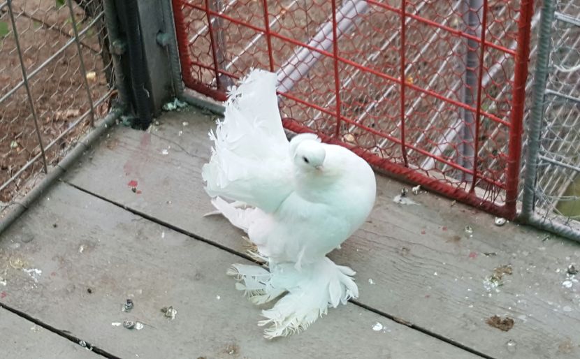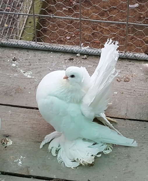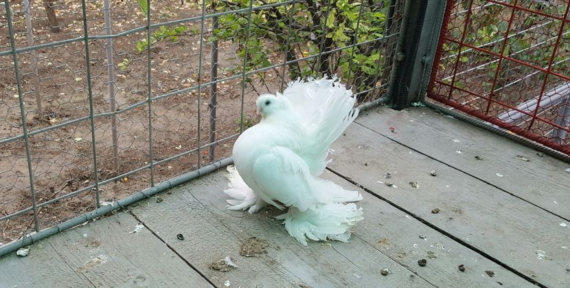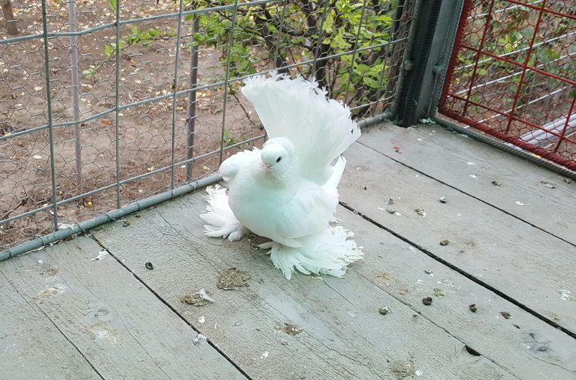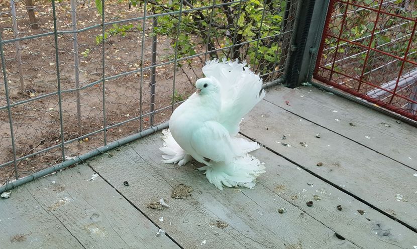 ASPECT GENERAL - Porumbei de forma, marime medie, cu un corp puternic, scurt, o coada lata si scurta , picioare foarte scurte, puternic incaltate cu pinteni...in timp ce sunt stresati pulseaza foarte tare din gat (tremur).